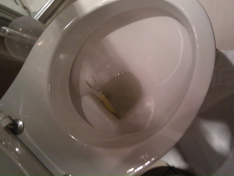 There is one thing I'd like to share, though. Go ahead, click on it. That's my toothbrush in the toilet. I can't make a freethrow if I wanted to, but I can nail a toilet with a toothbrush from 20 feet away. I'm like Janikowski with that shit. I do have a new toothbrush now. No, I didn't go after it. Yes, the hotel maids hate me.